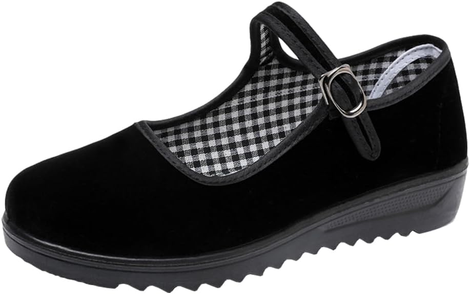 Black Velvet Mary Jane Shoes for Women China Dance Flat Old Beijing Cloth Walking Shoes