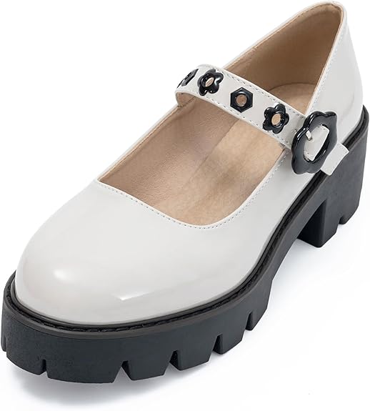 Women's Mary Janes Shoes for Women, Platform Dress Low Heel Chunky Pumps Round Toe Ankle Strap Pumps Shoes Oxfords