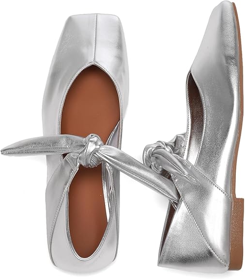 Square Toe Ballet Flats for Women Bow Mary Jane Flats Slip On Dress Ballerina Shoes