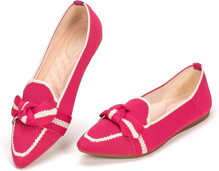 Womens Knit Ballet Flats Ladies Comfortable Pointed-Toe Dressy Shoes Casual Soft Flat Shoes Ballerina Walking Flats Shoes